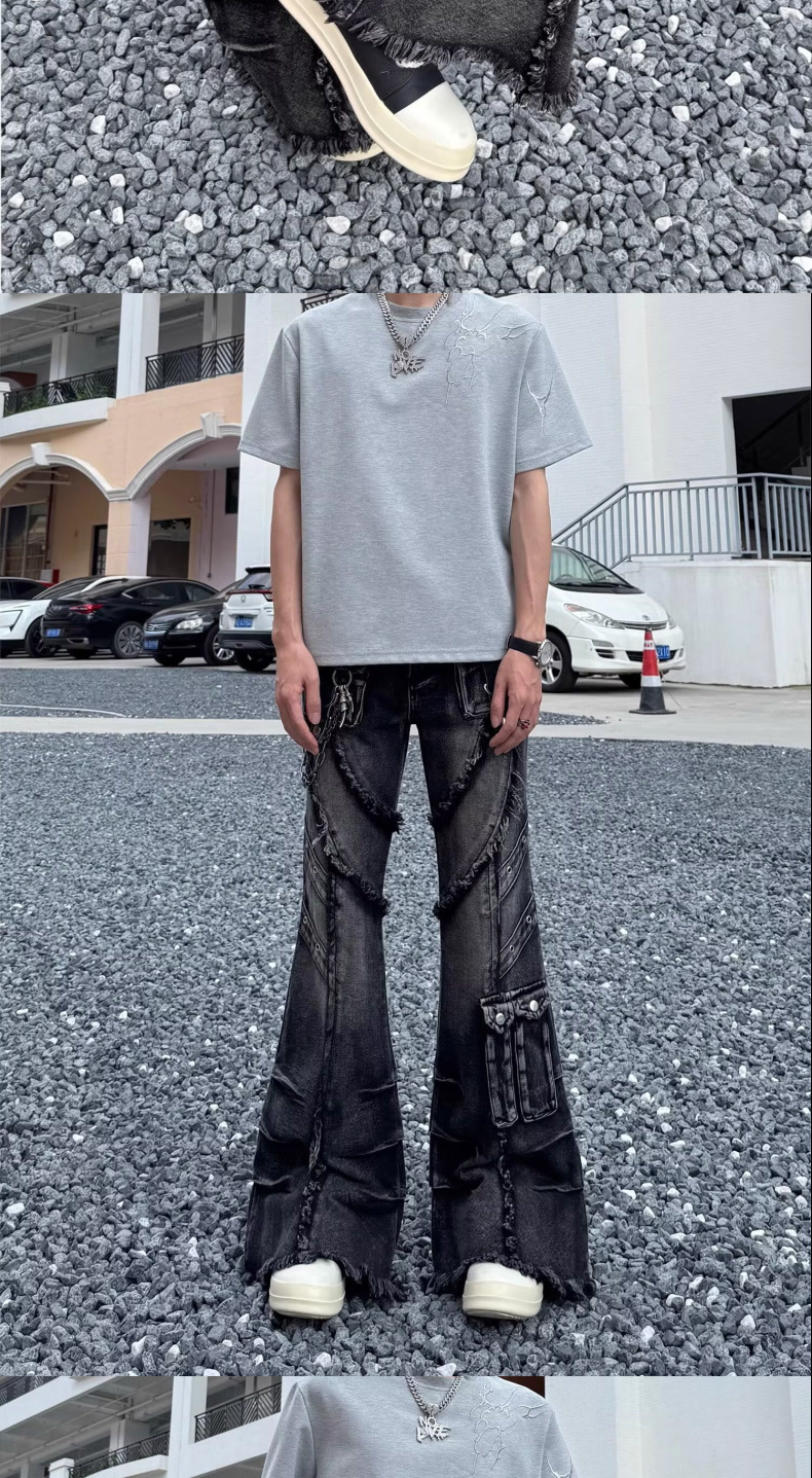 High Street Fan Color Jeans Women's Multi-pocket