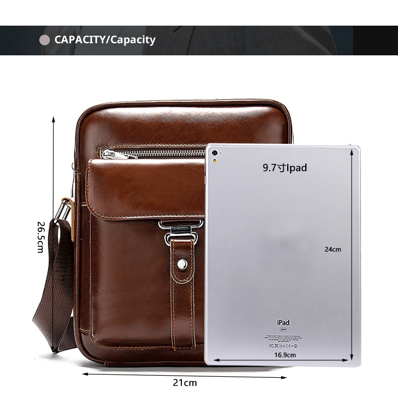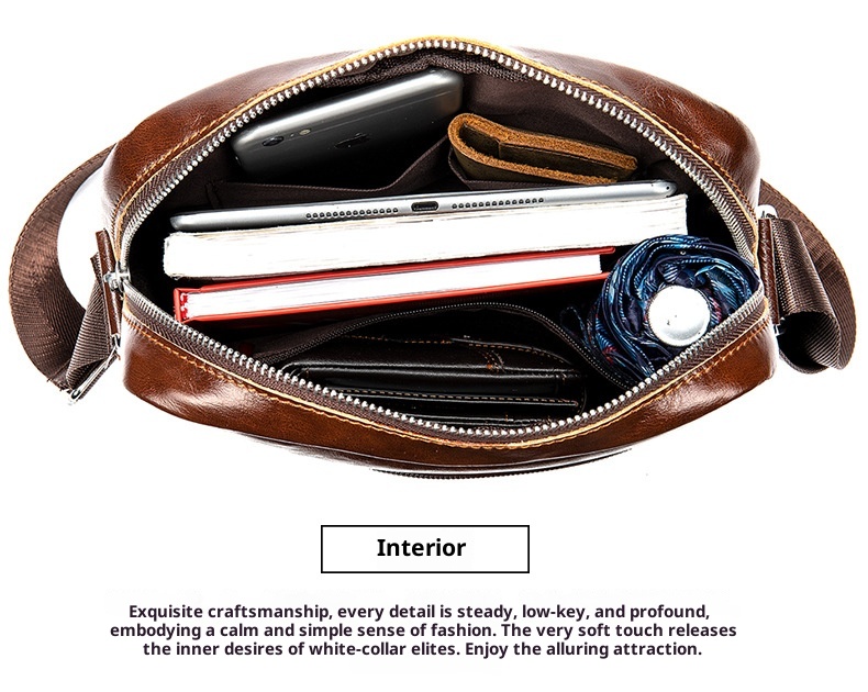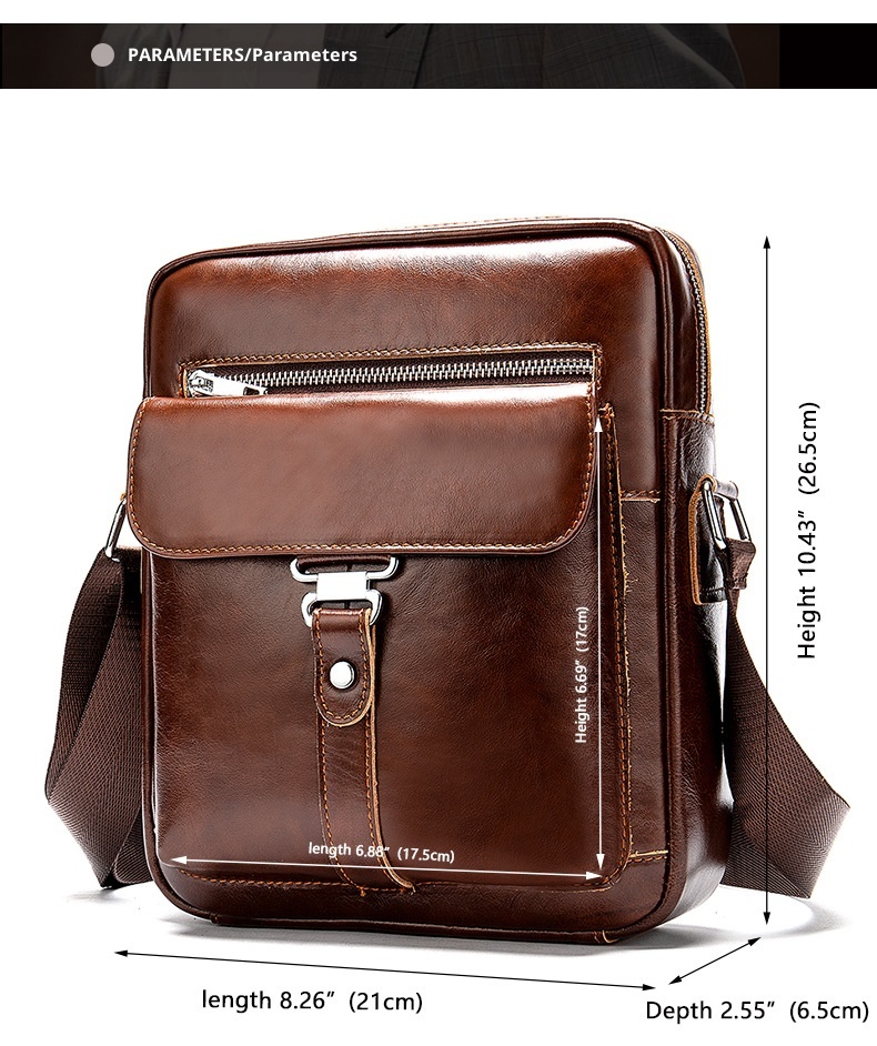 Men's Leather Messenger Bag Vintage Casual First Layer Cowhide