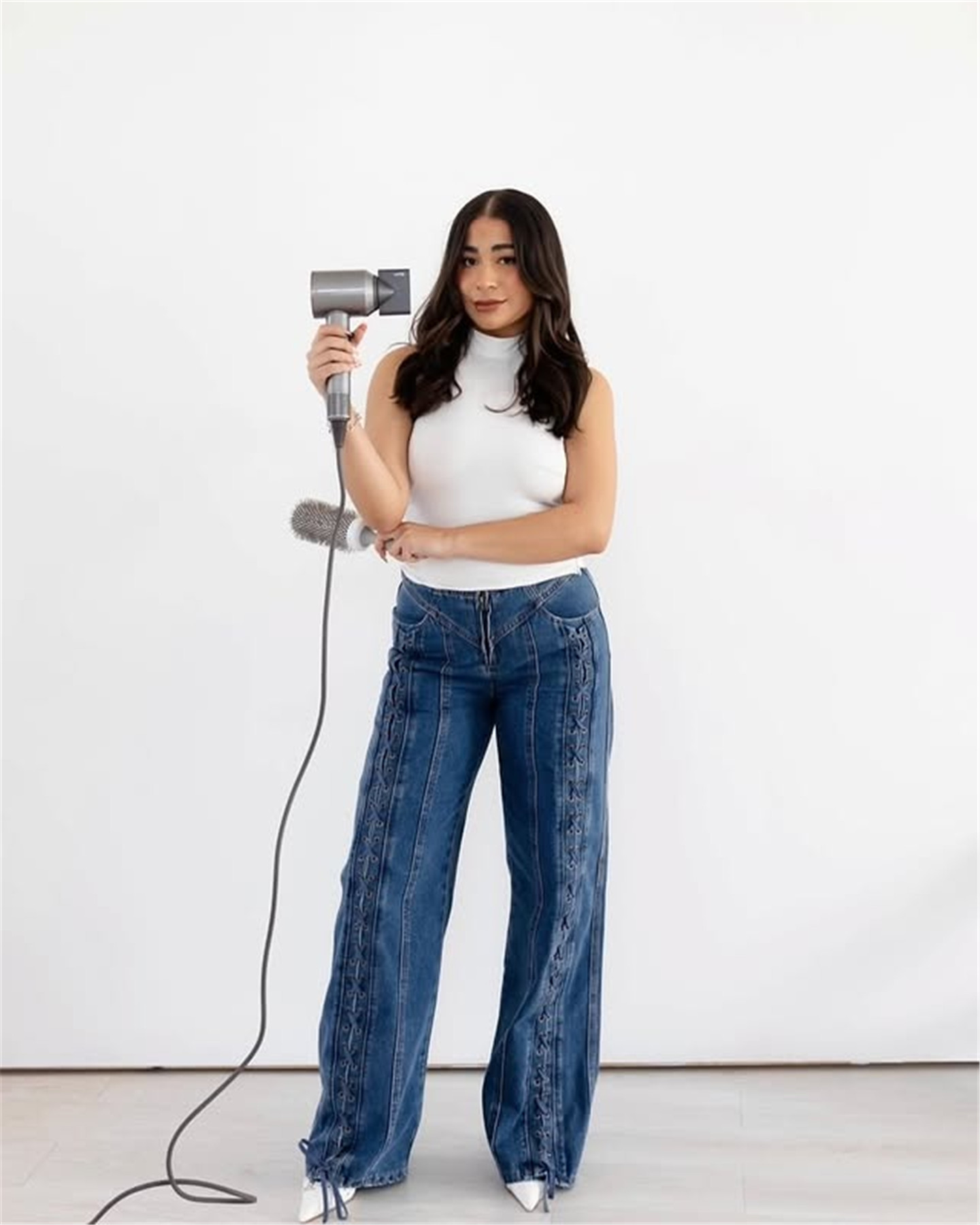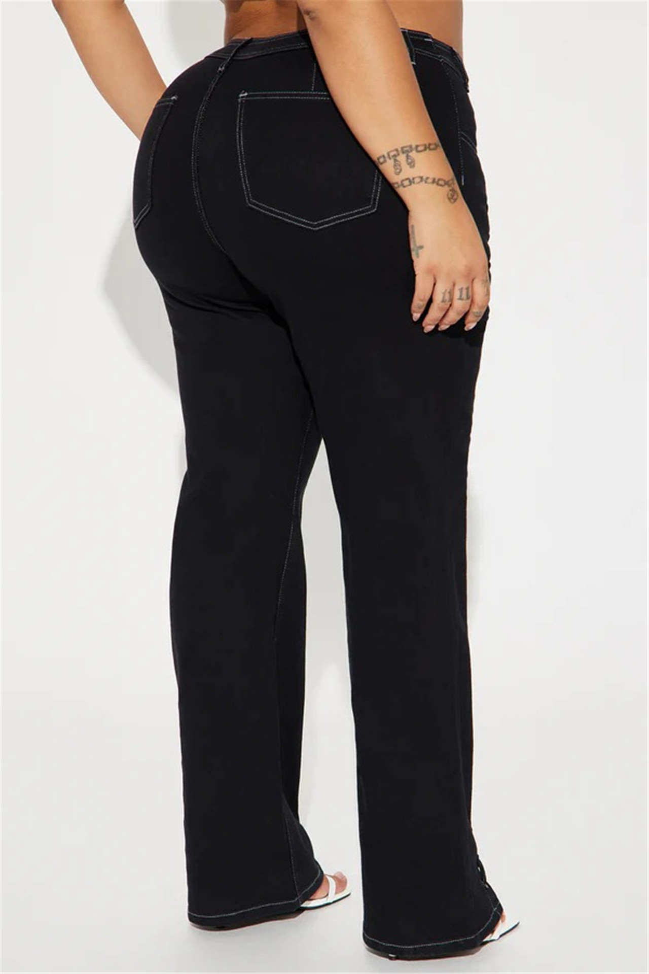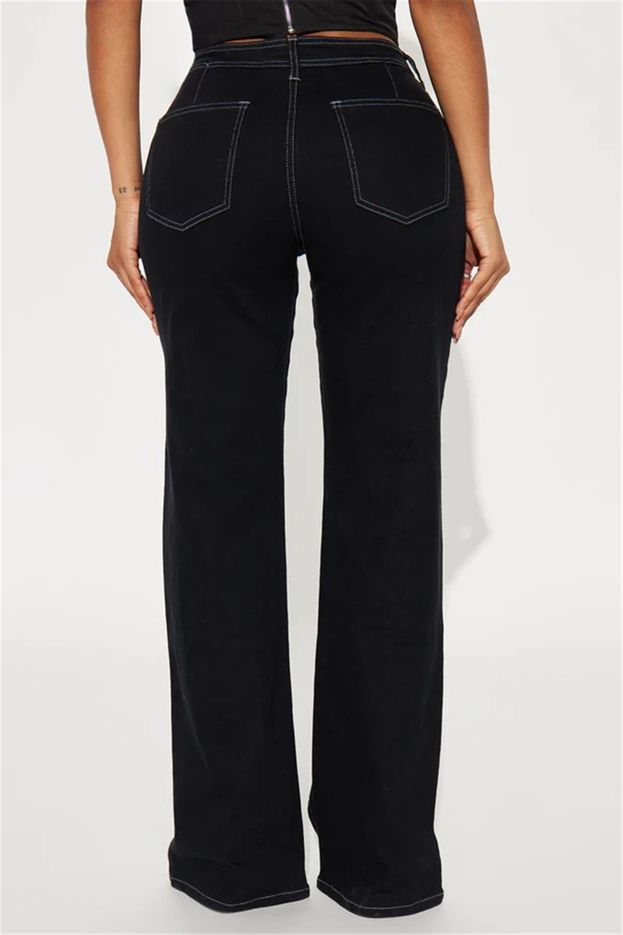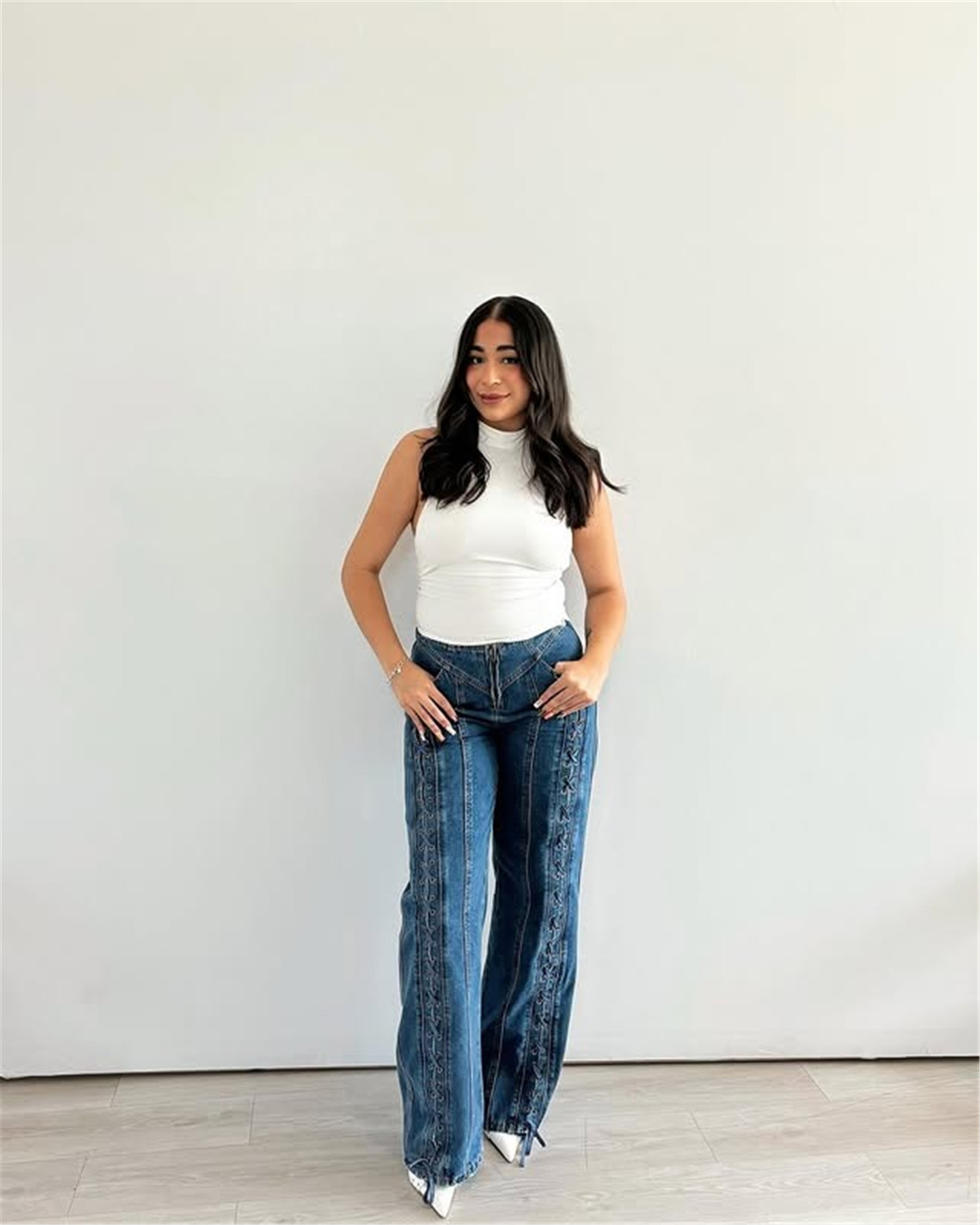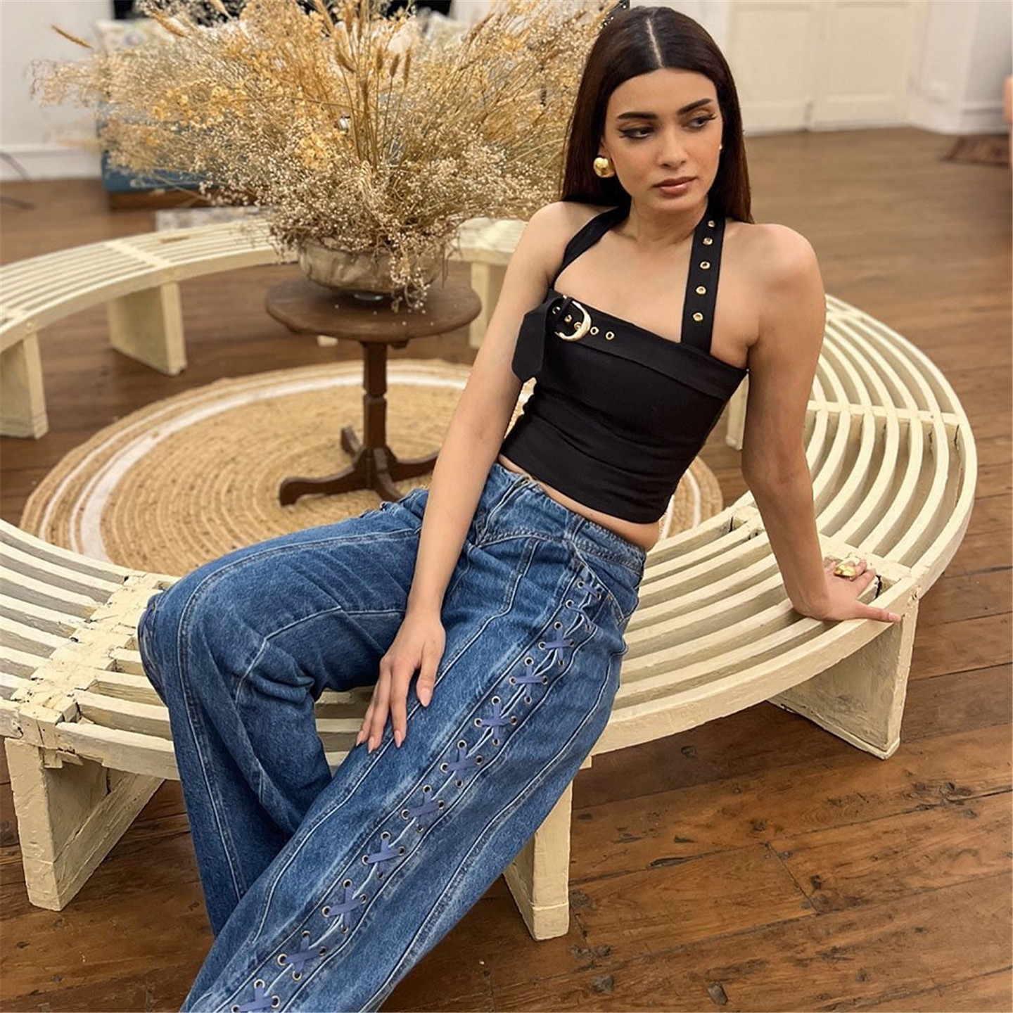 New Low Waist Hollow Lace-up Wide-leg Jeans For Women