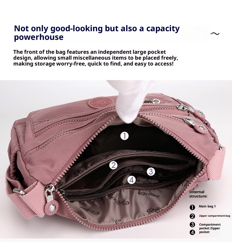 Nylon Crossbody Cloth Bag Large Capacity Multi-compartment