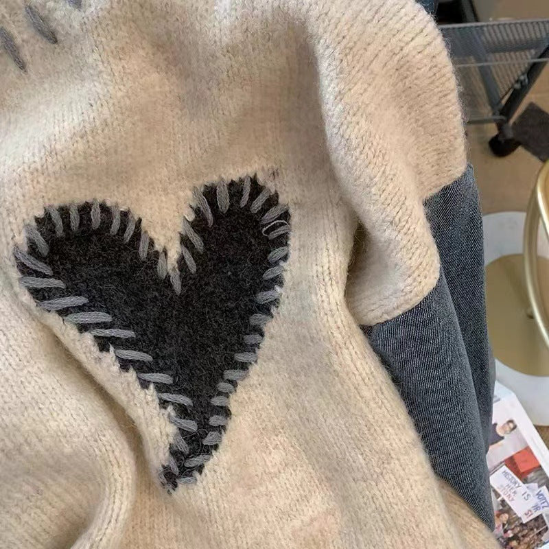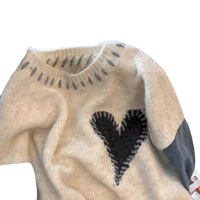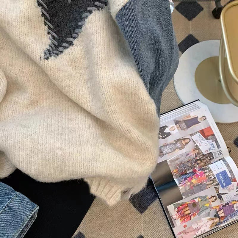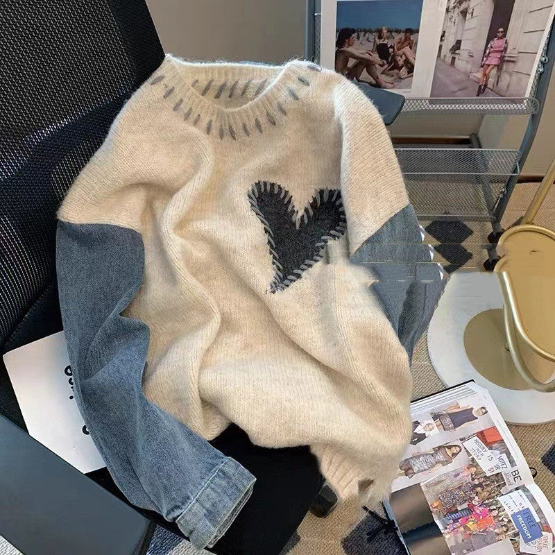 Spliced Denim Sweater Tops Women Loose Lazy Wind