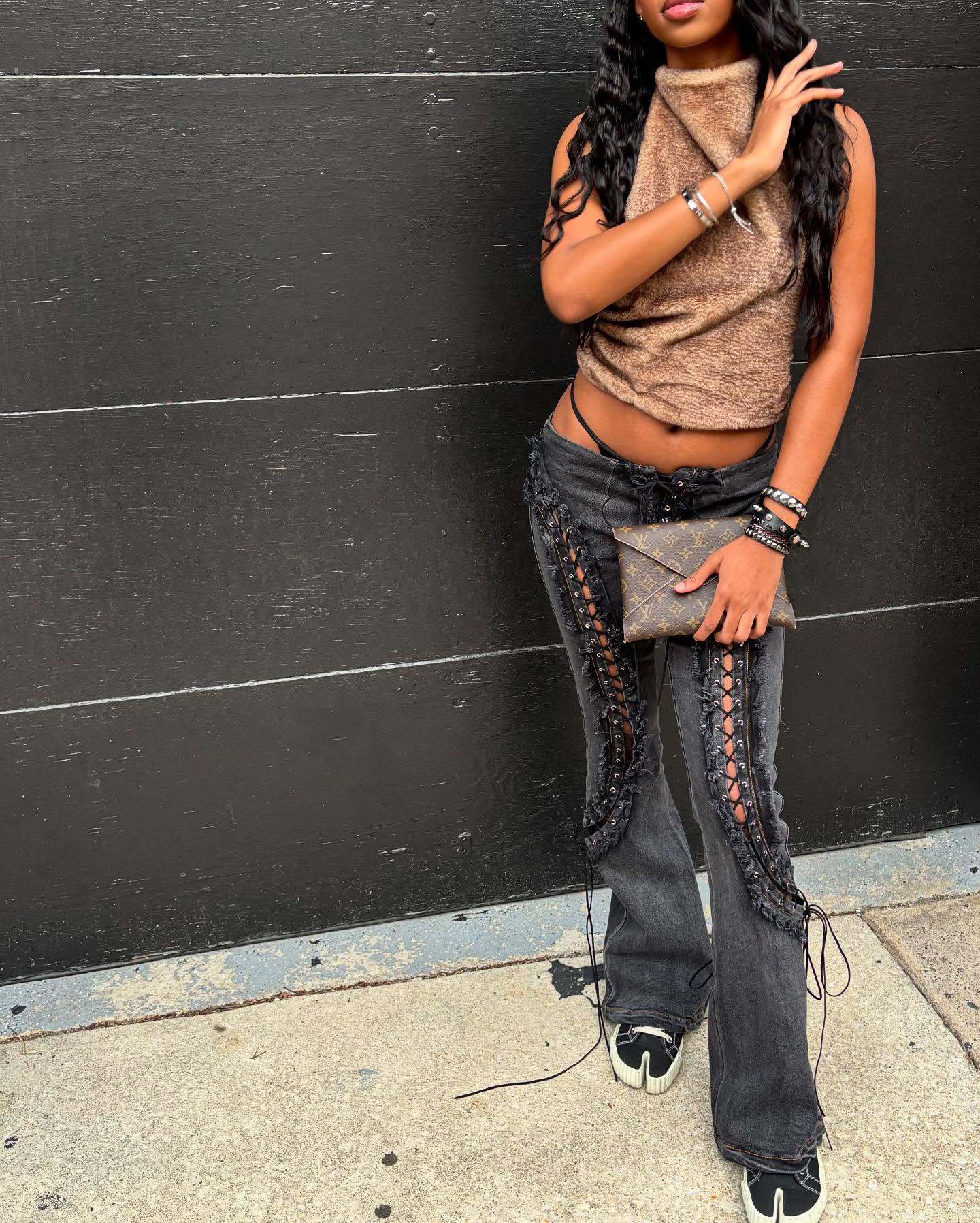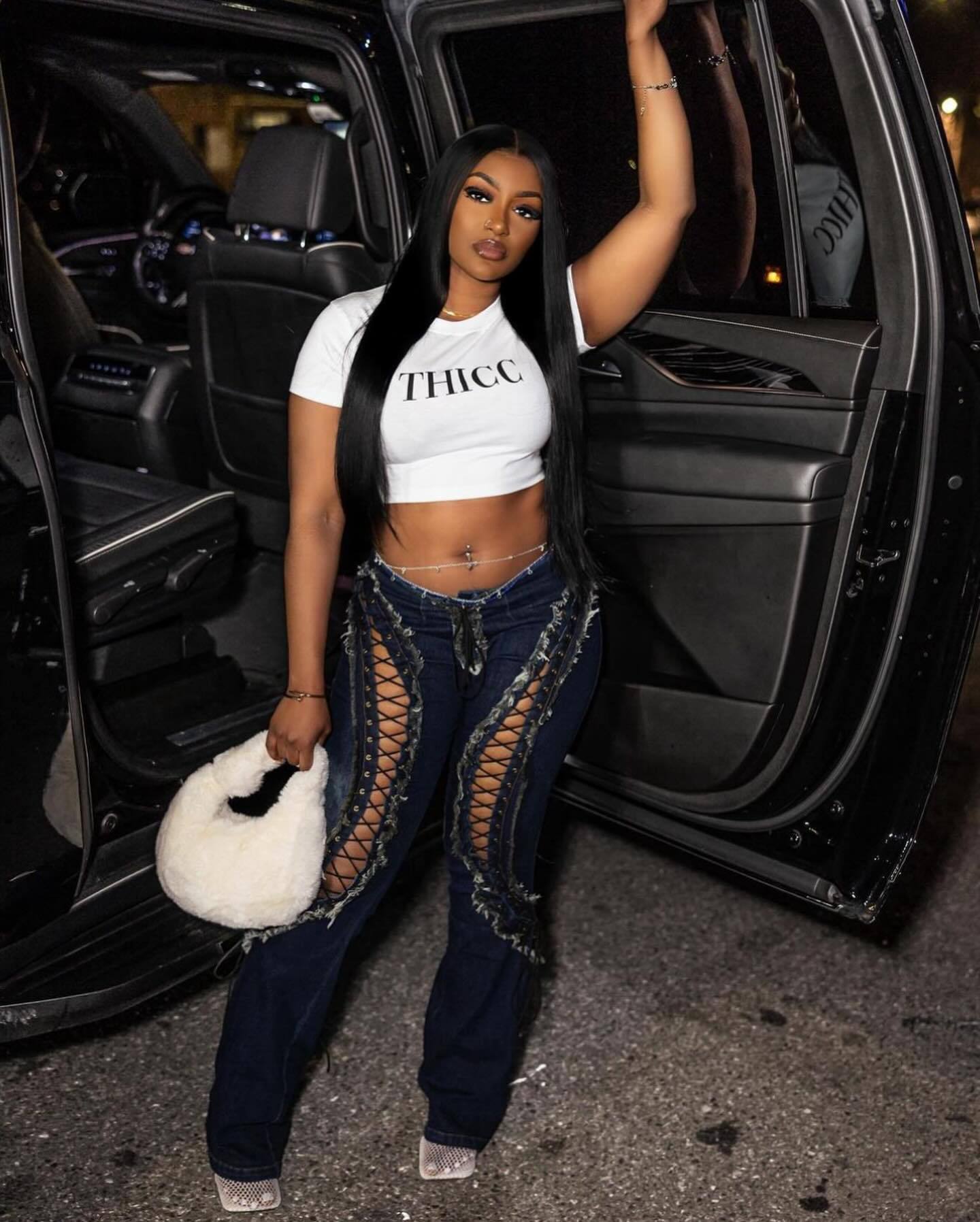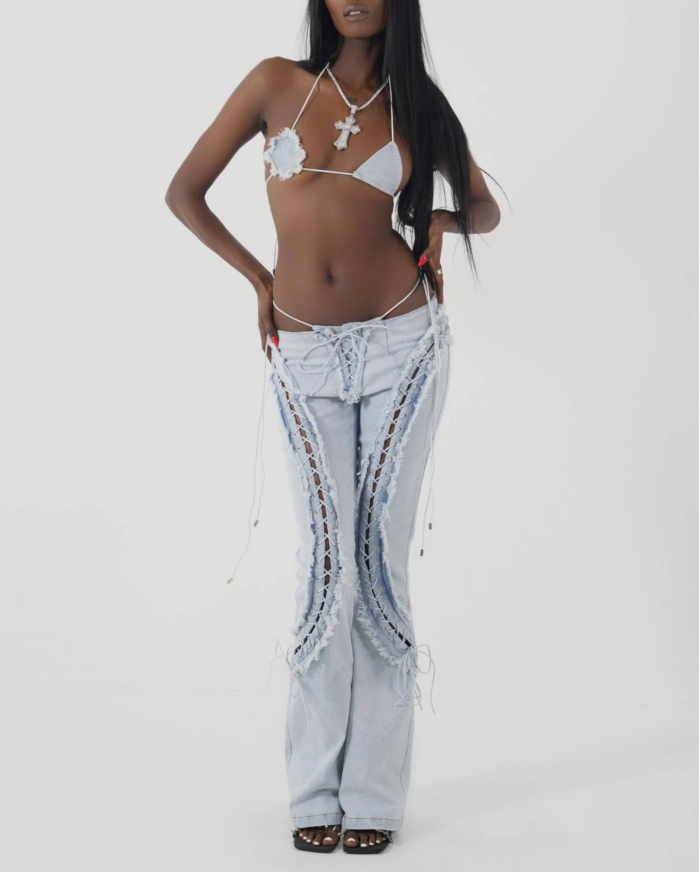 Stretch All-matching Frayed Lace-up New Slim Jeans For Women