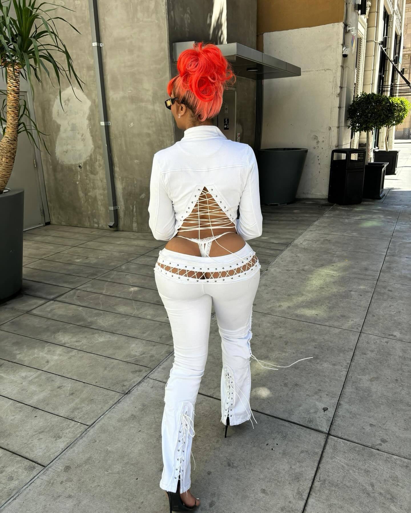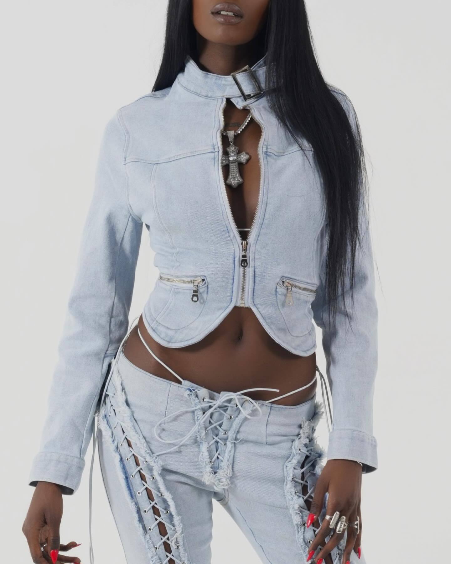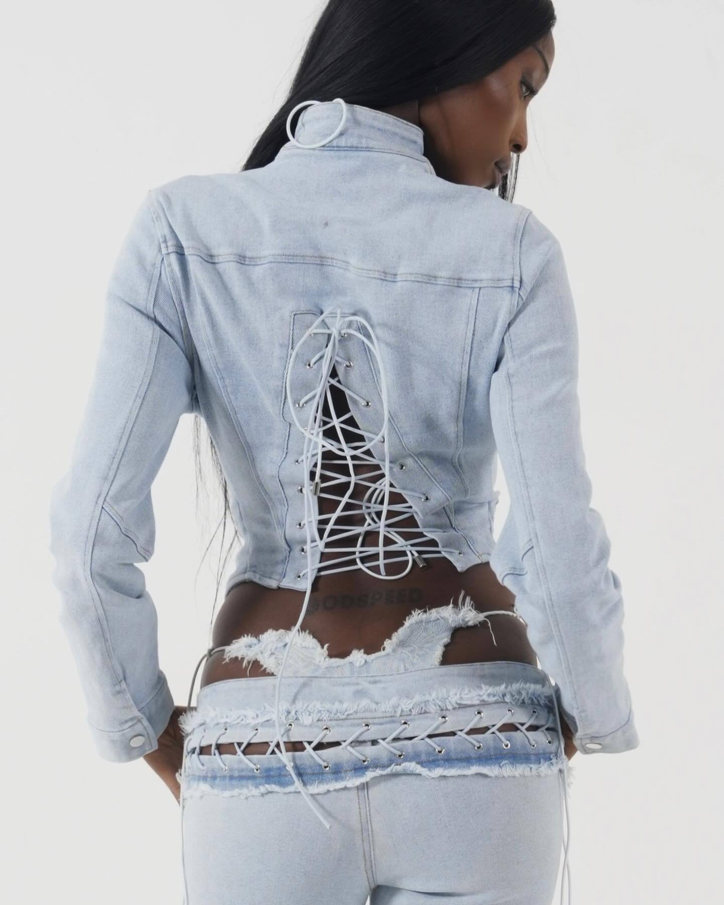 Stretch All-matching Frayed Lace-up New Slim Jeans For Women